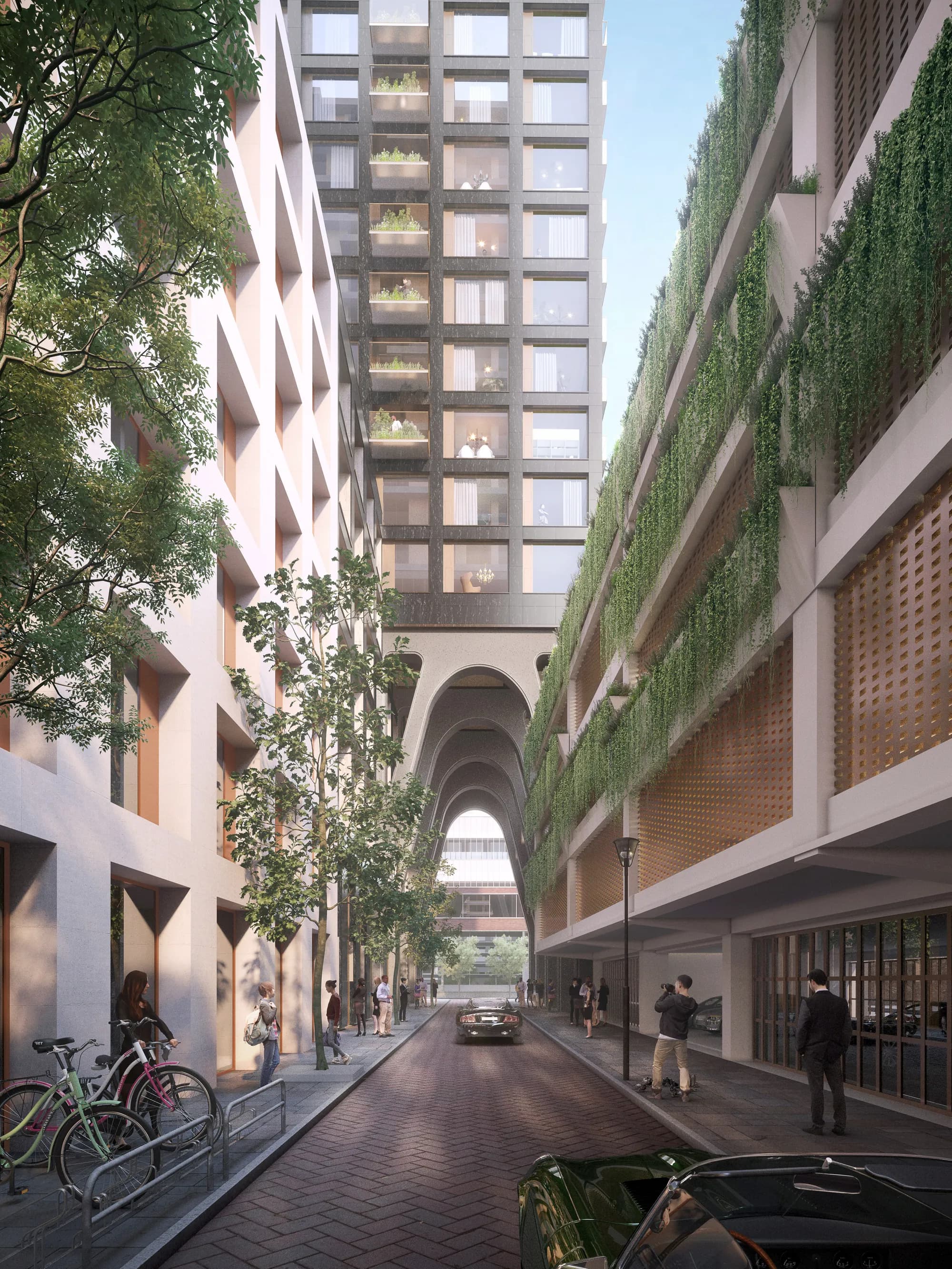 Een spectaculaire poort van 25m overbrugt de Hoornbrekersstraat